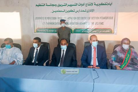 أشرف معالي وزير التهذيب الوطني وإصلاح النظام التعليمي السيد،محمدماء العينين ولد أييه اليوم الثلاثاء بمدينة أكجوجت على افتتاح الايام التفكيرية لإنتاج أدوات التسيير التربوي ومجانسة التنظيم الإداري لمدارس تكوين المعلمين.